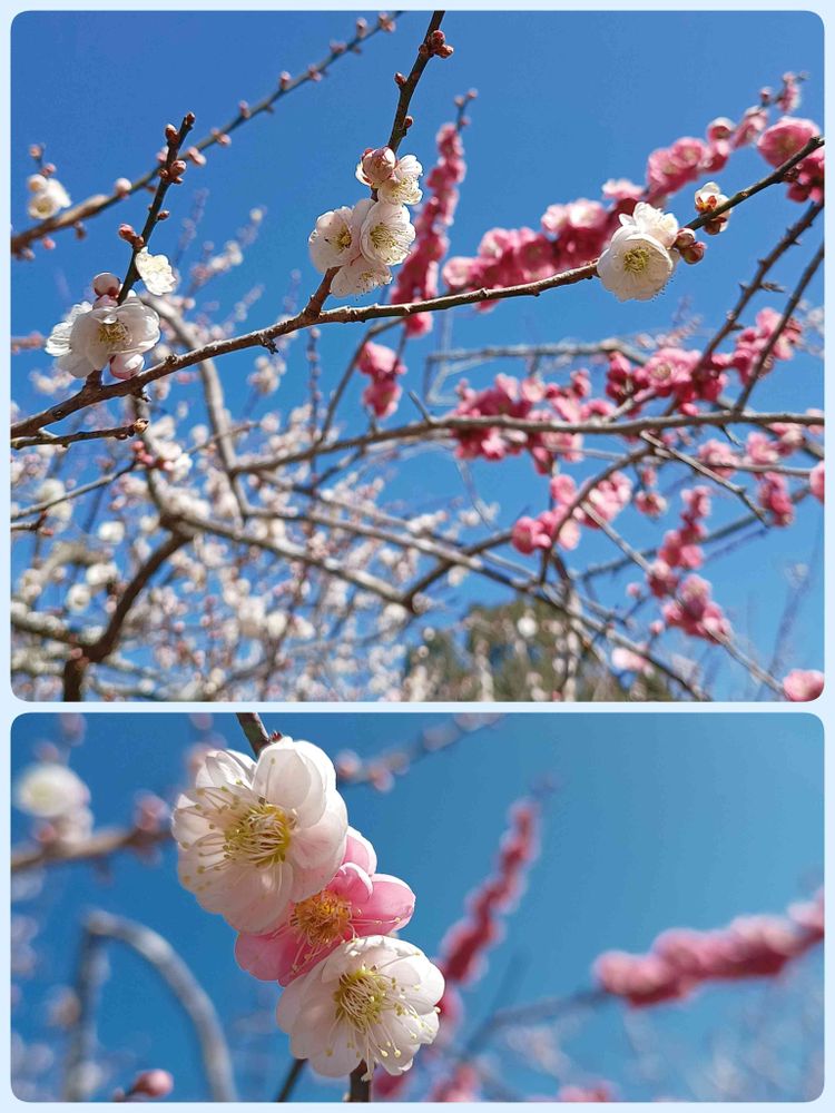 1本の木で、赤、白、絞りが楽しめて嬉しい梅ですよね。❤️💓🤍🌿