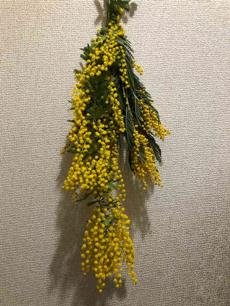 おはようございます😃昨日行ったガーデンでミモザをゲットしてきました!ハウスの中で咲いているのを切って販売してくれました💛