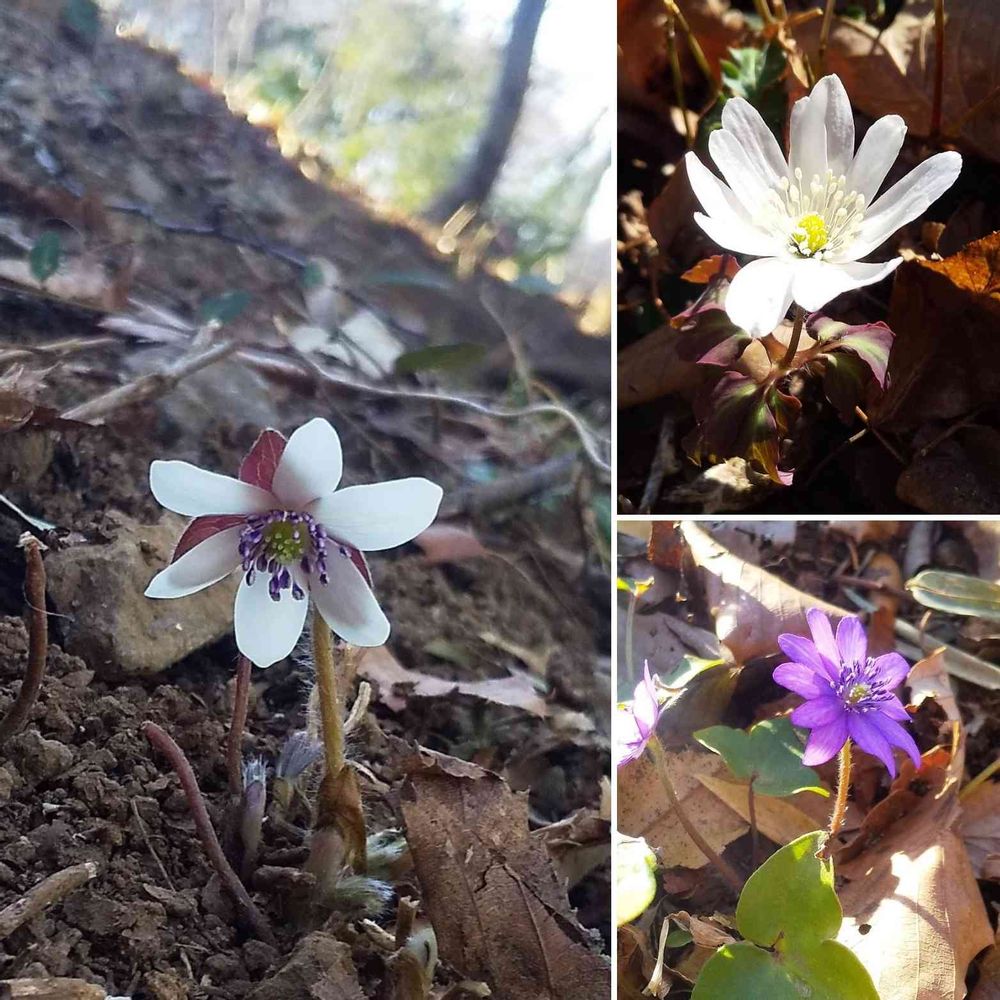 ミスミソウが咲いていることを知り、会いに行ってきました。ポツリ、ポツリですが可愛いく咲いていました💕 右上のアズマイチゲも見れて嬉しかったです✨🌼🌿