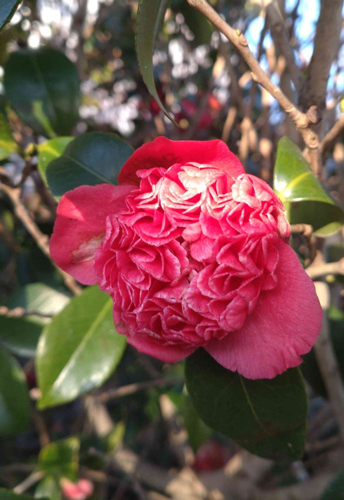 庭のツバキ(紅ㇳ伴/紅唐子)さんです(*^^*)💓