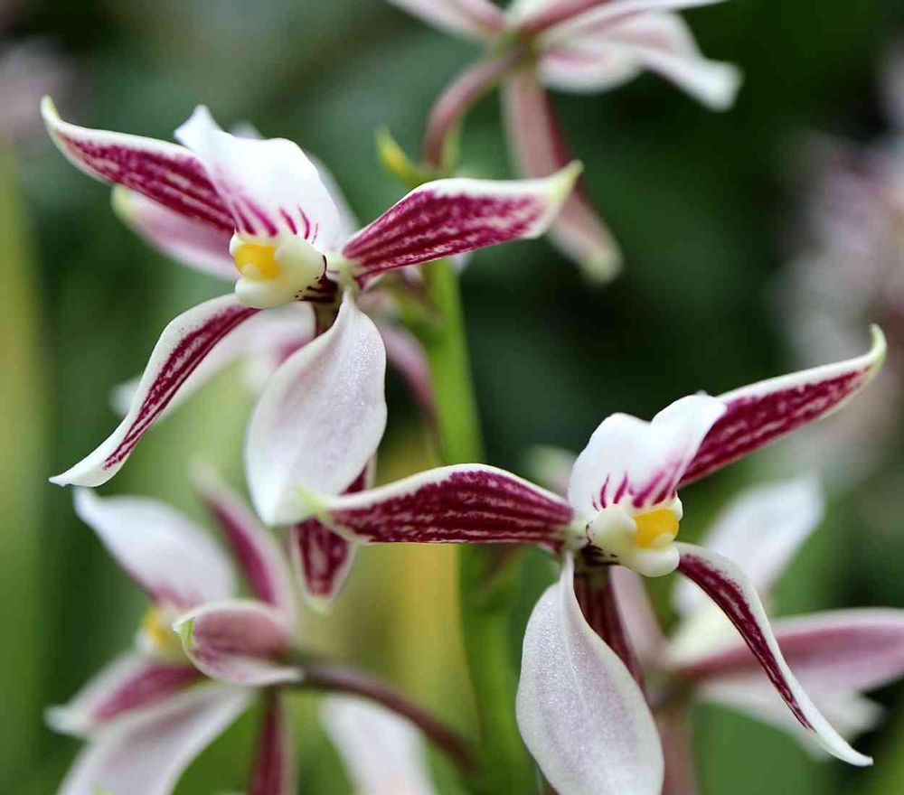 細長い花弁に紫褐色のシックな色が印象的な着生ラン。