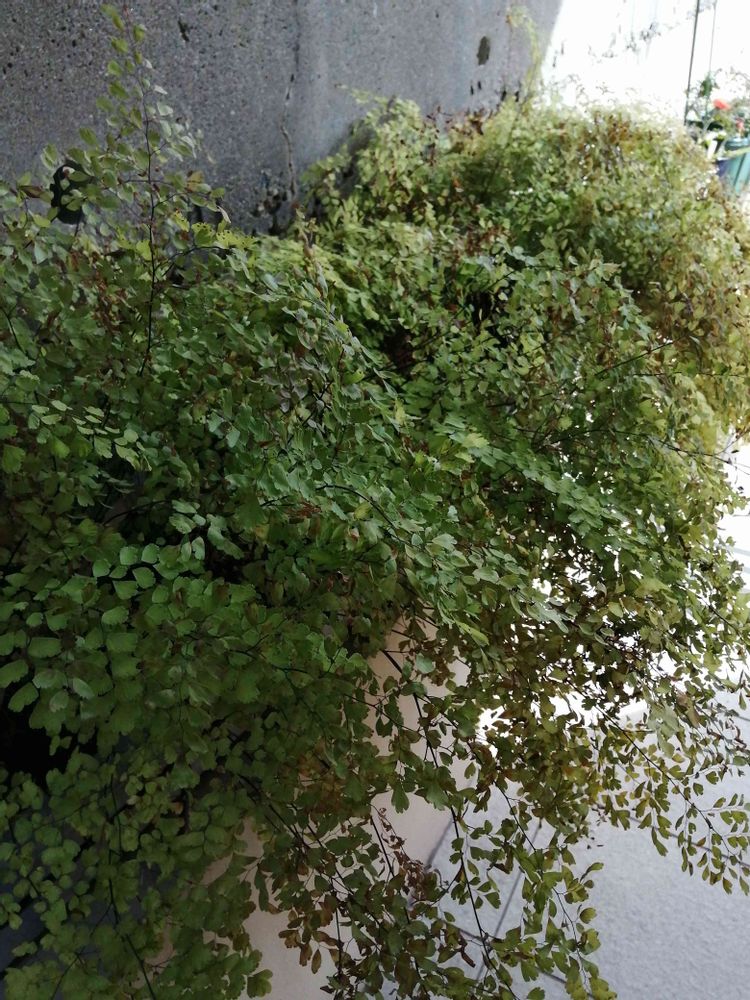 アジアンタム、玄関前の軒下で不織布なしで越冬。流石に寒さで葉っぱ🌿の傷みが目立つ様になったので、根元からばっさりカット✂️し株分けして植え直ししなければ。