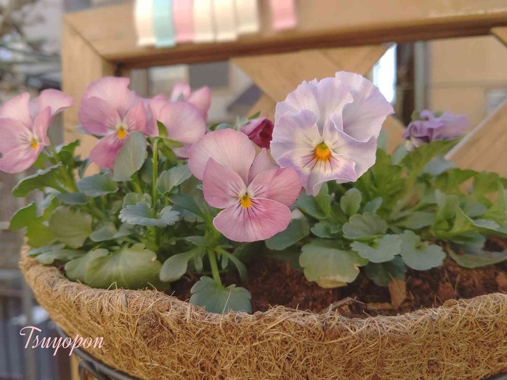 壁掛けのヤシガラプランターに2ポット植えしました(*´∀`)♪