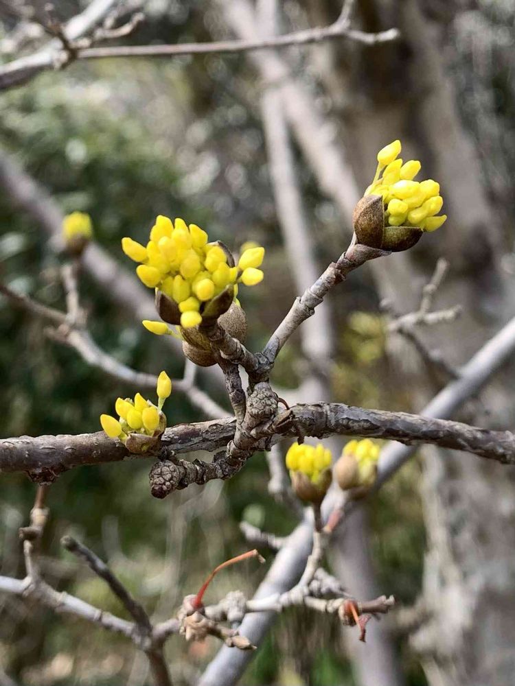 紅梅や山茱萸。ようやく春が来た感じですね。今日は暖かくちょうどいいです🦦