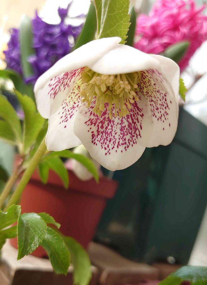 良いお天気なので、ガーデニングしてたらあっという間にお昼です😆🌱クリスマスローズがうつ向いて咲きました😄💕一生懸命覗き込んでパチリ📸💕スポットがとても可愛らしい子です(⁎˃ᴗ˂⁎)💖