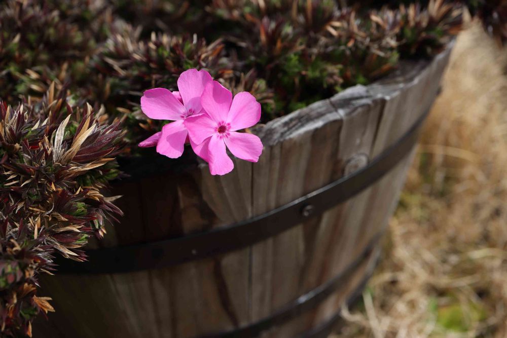 少し暖かくなり、気の早いシバザクラが数輪咲き始めました。