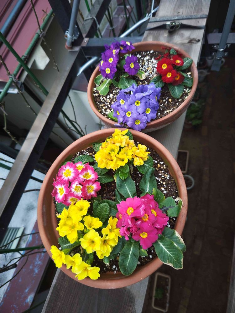 投稿写真はバラがないときのプリムラです。とても目を楽しませてくれます。以前であれば、プリムラだけで、10鉢以上作っていましたが、いまはバラのお手入れが大変なので、2鉢だけです。