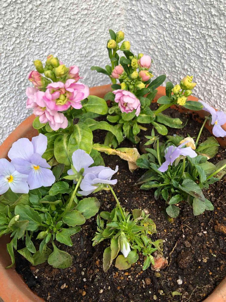 種まきストックとビオラの寄せ植え。これからこんもりと育てたいです🌟