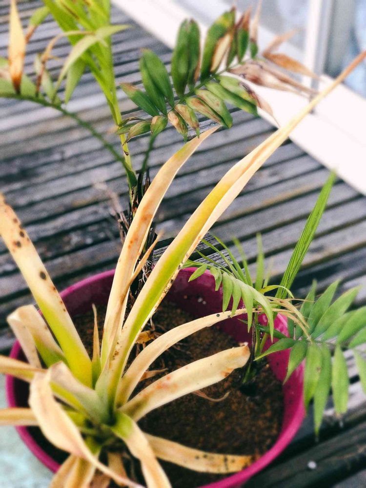 手前は Oisix台湾パイナップル 挿し木🪴2年生 同じく ずっと屋外😭