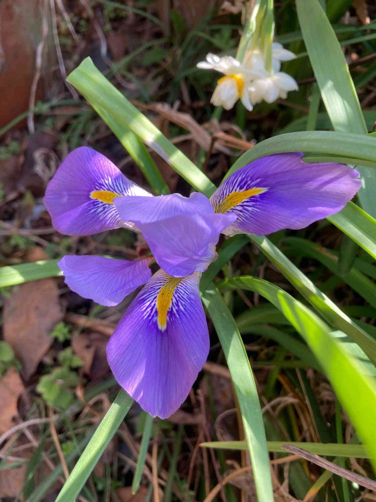 寒咲あやめ、2月に投稿しましたが、あれから次々に咲いてます。でも土から近いところで咲いているので、まわりの他の葉っぱの下になって見つけにくく、撮りにくいです😣