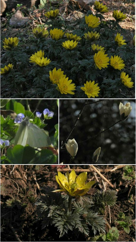 フクジュソウ,ハクモクレン,紋白蝶の投稿画像