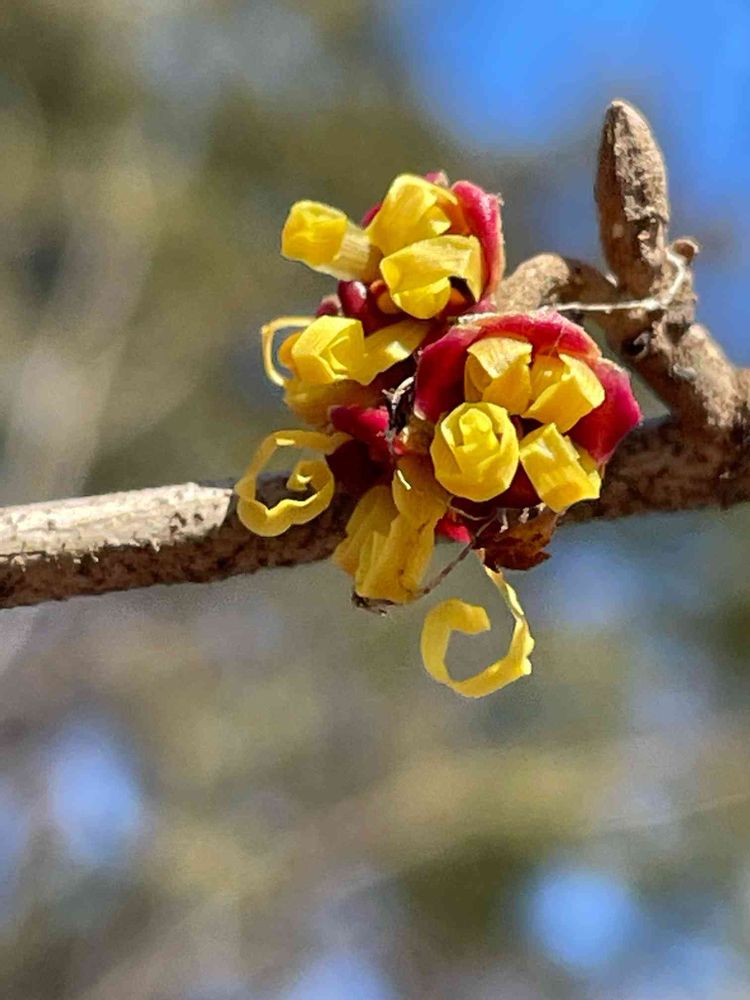 散歩に出て、マンサクの咲き始めに出会いました。クルクル🌀していてかわいいですね。これからいろいろなお花が咲き出します🌸🌿🌼🌷🍀🌺
