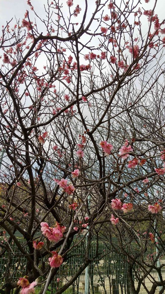 マンションの裏の公園に、梅林みたいだけど、ピンクのウメの花が綺麗にたくさん咲いています。
