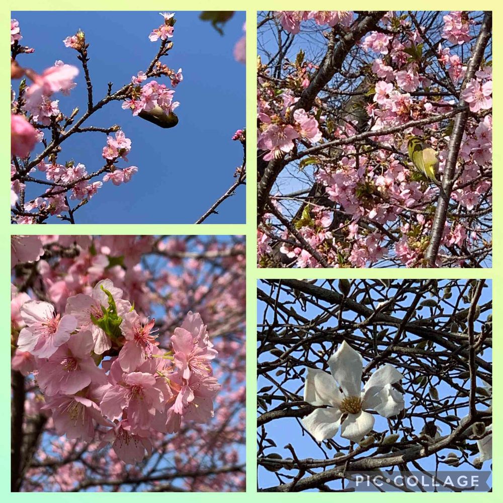 河津桜🌸よくみるようになったよね〜❣️メジロが可愛い😍佐久間ダムでは見られなかったのよん。