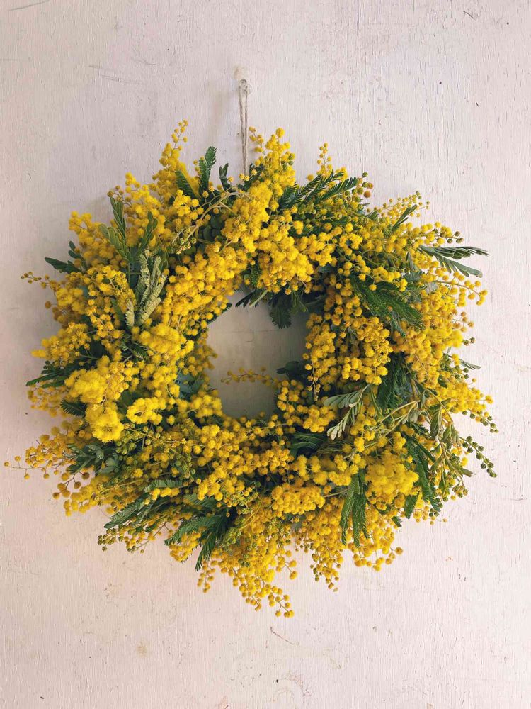 作りたてはふわふわで可愛い感じでしたが、数日経ってドライになりつつのミモザのリースも魅力的です💕😊
