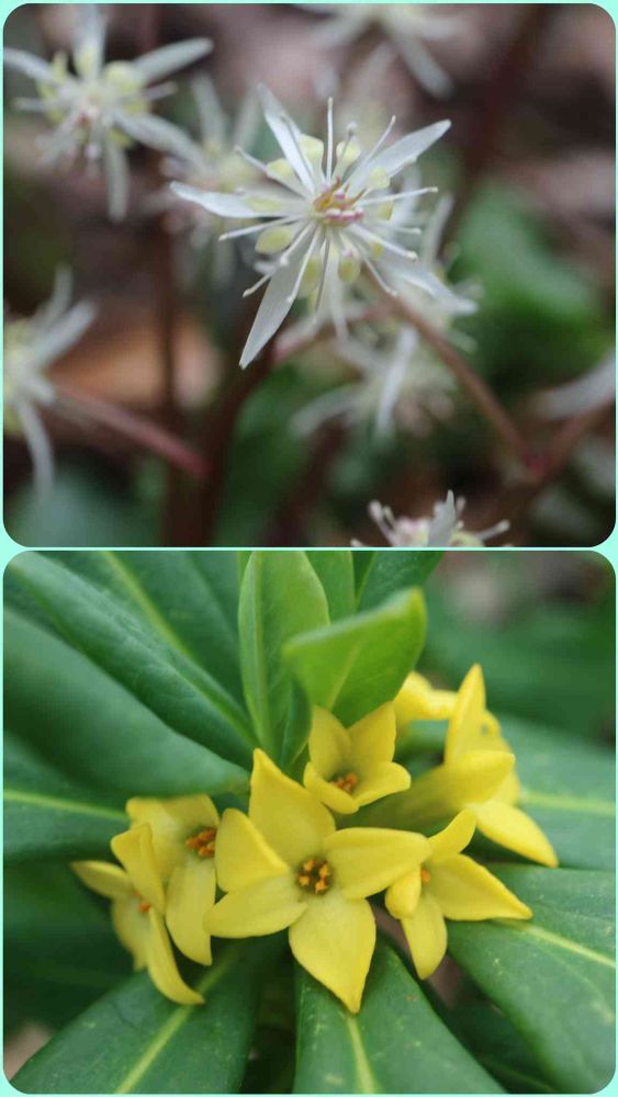 ⬇️ ナニワズ(難波津)ジンチョウゲ科ジンチョウゲ属の落葉小低木。コノ娘も足下でマンズ咲きます。色がイイですネ〜。ビタミン・カラーの表現が似合うと思うのは、オイラだけか⁉️。