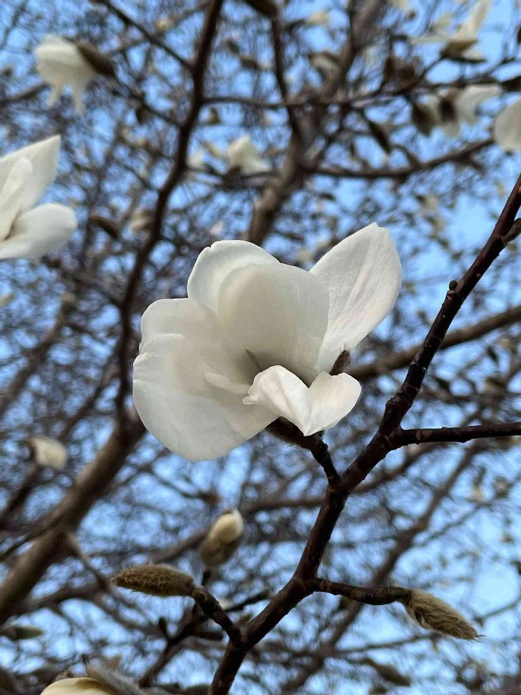 近くの公園で こぶしの花がさきだしました。