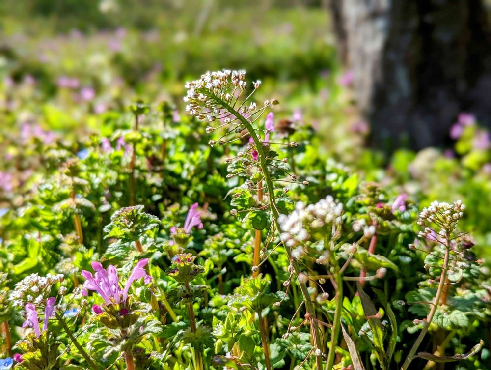 ナズナがホトケノザにお遊戯を教えてる幼稚園の先生のようで微笑ましいです🥰