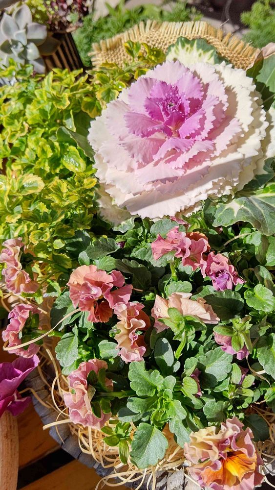寄せ植えのビオラも葉牡丹も、絶好調😆種蒔きからの葉牡丹つぐみは、花のよう😍綺麗に咲いてます。