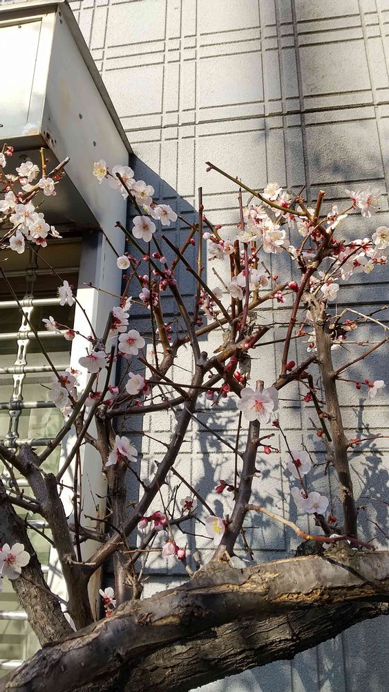 家の周りに、ピンクの梅の花が綺麗にたくさん咲いています。