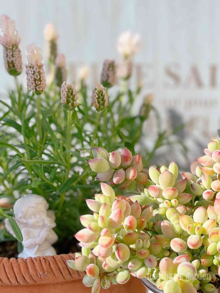 ムッチリぷくぷく多肉を探して多肉棚を見たら目が合ったのがこのペンデンス❣️知らない間にスゴくかわいい色になってたんですよ〜(๑♡∀♡๑) 新しくお迎えしたラベンダーもお気に入りです❣️