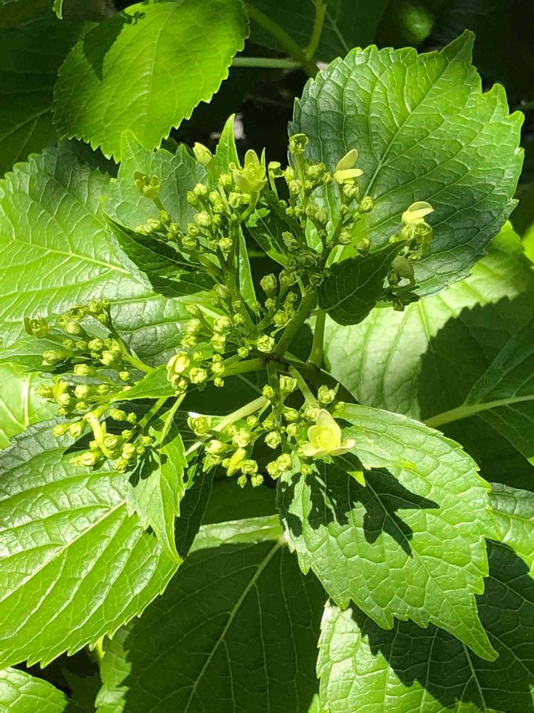 あじさい寺に行った時、気に入ってつい買ってしまった墨田の花火、ガクアジサイです。