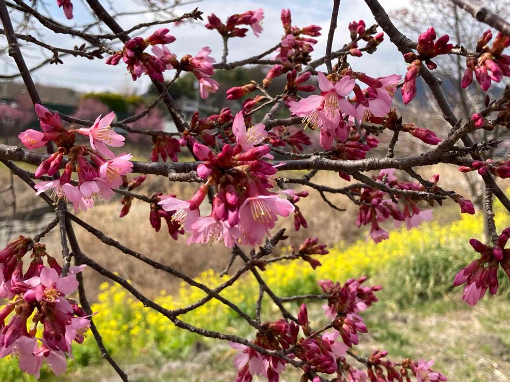 あっ!オカメザクラ🌸🌸と菜の花✨️💖