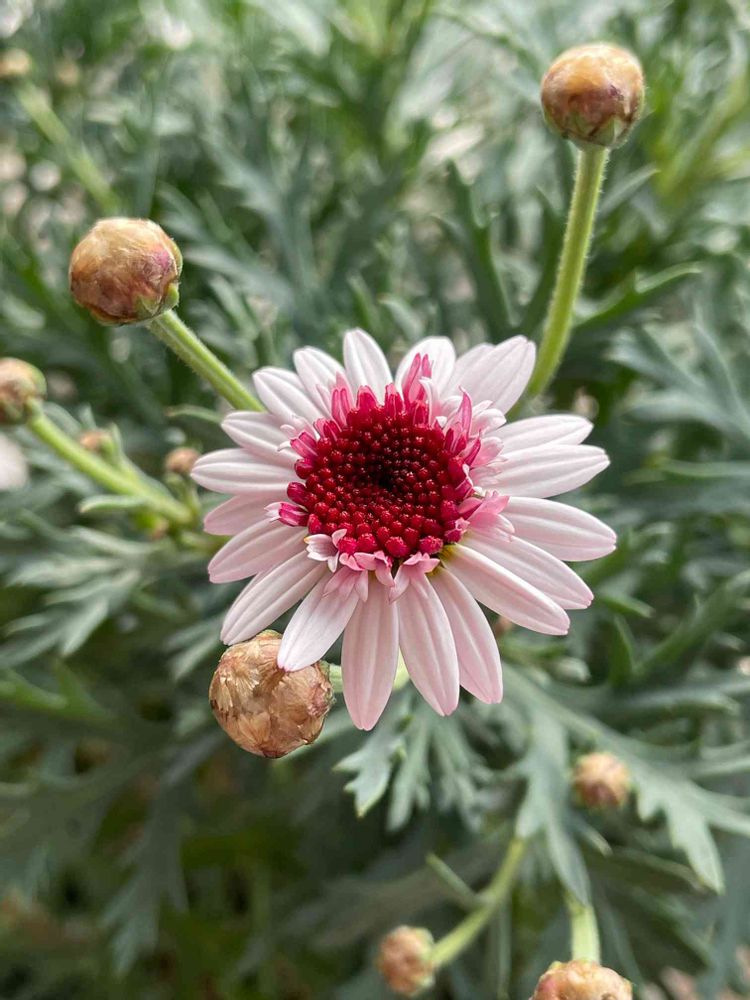 その子も冬越ししてアフロヘアのようにこんもりと…最近チラホラ咲いてきました🌸 もう少し咲いたらupしようと思います🥰
