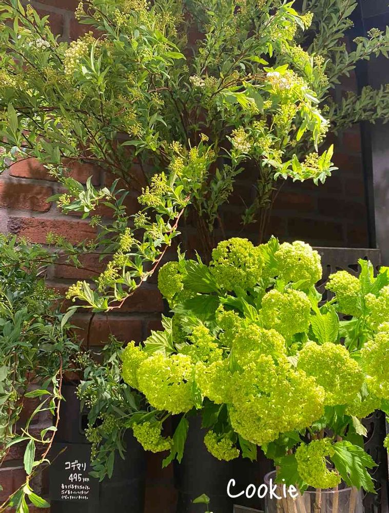 春は黄緑が素敵😃お花屋さんの店先のコデマリとビバーナム💚