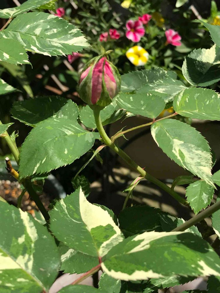 初めてこのバラ🌹に出会った時 斑入り好きとしては お迎えせねばと思いました😁