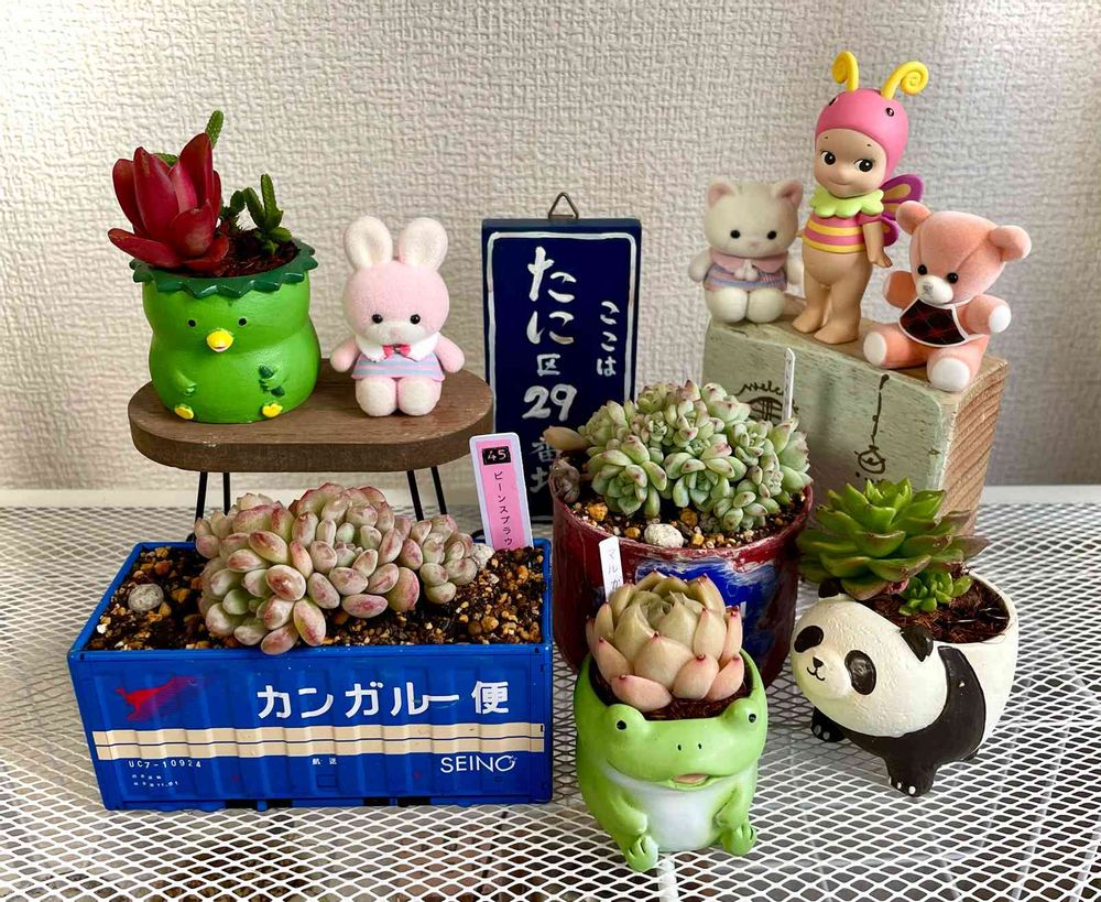 mimimiちゃん🌸カンガルー便🦘可愛い❤️あとカッパさんも💚楽しい寄植え❓ね٩(*´˘`*)۶♡♡