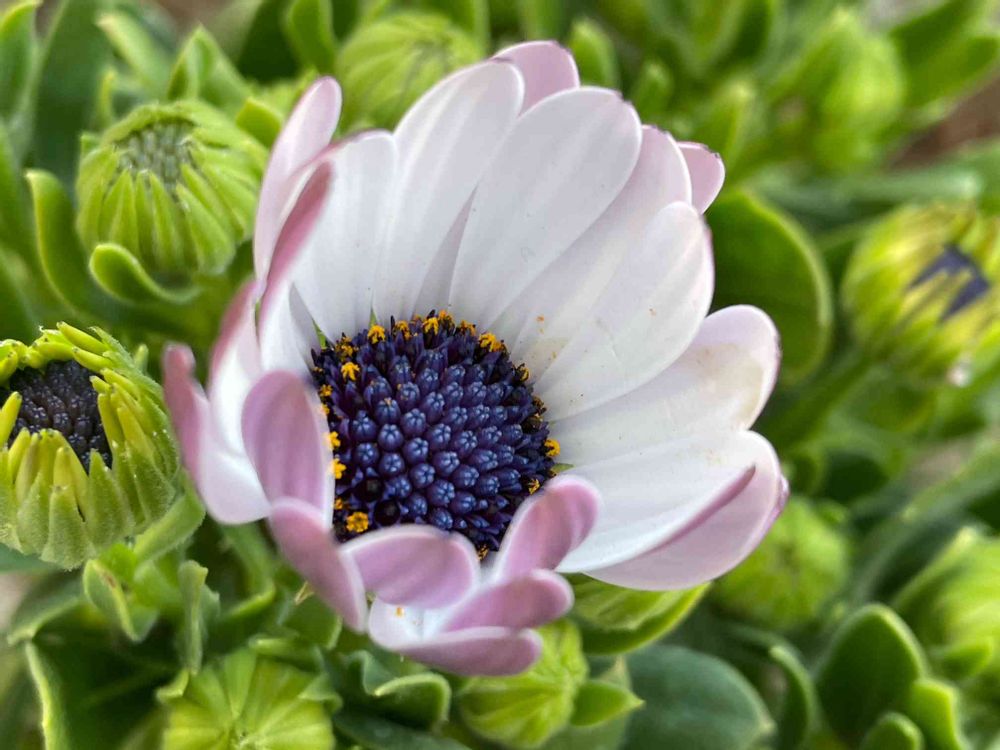 しっかり開いてしまうと花弁の裏側の薄紫が見えないし、真ん中の青いつぶつぶも黄色く咲いてきちゃうし…
