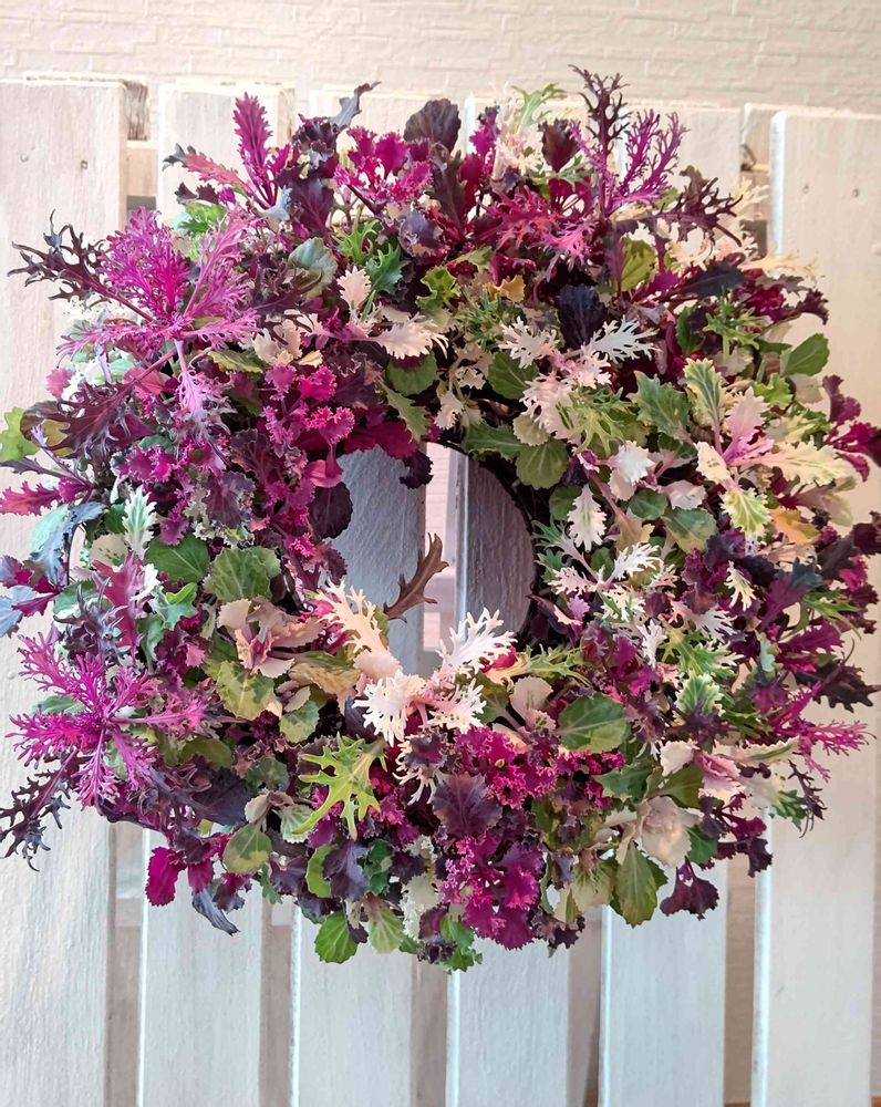 先日、満6ヶ月を迎えた葉牡丹リース。赤紫💜白🤍緑💚、色がハッキリして綺麗です😍