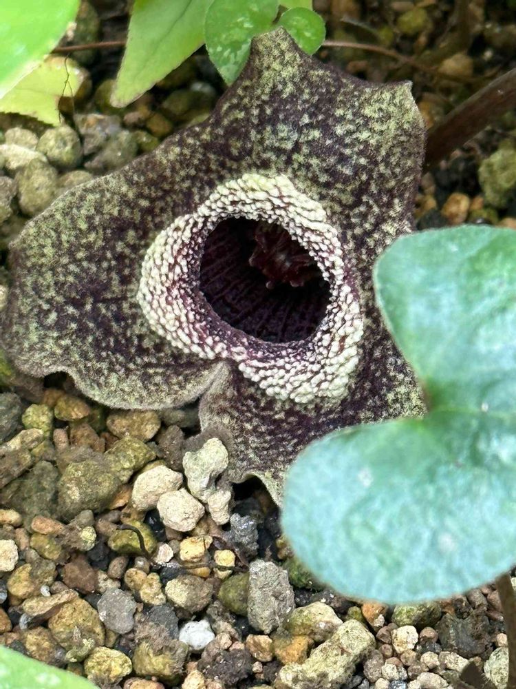 →カンアオイの一種で、奇妙な形の花の様に見えるのは萼片です〜葉の下に隠れる様に咲く姿もユニークです。