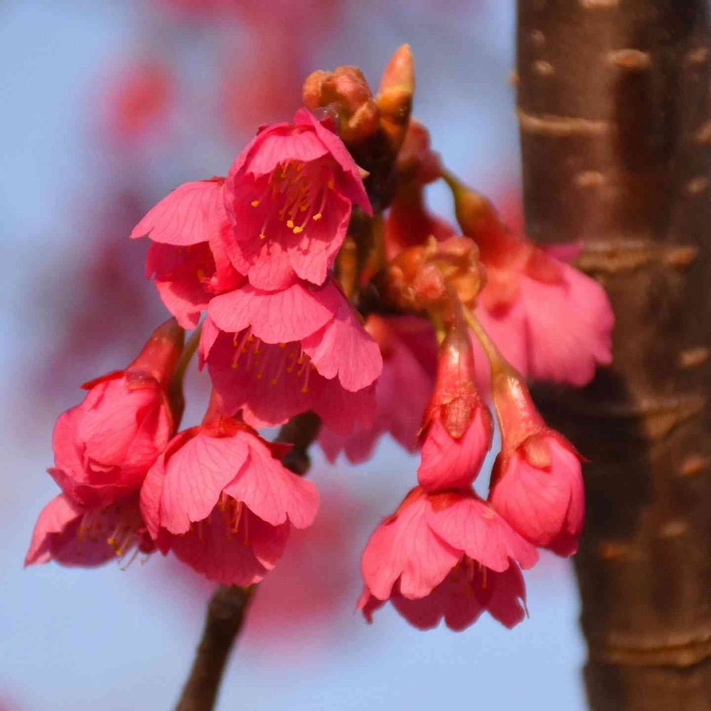 【研究学園の花々】2023年3月5日、研究学園駅前公園の寒緋桜が開花しかわいい花を咲かせていました!