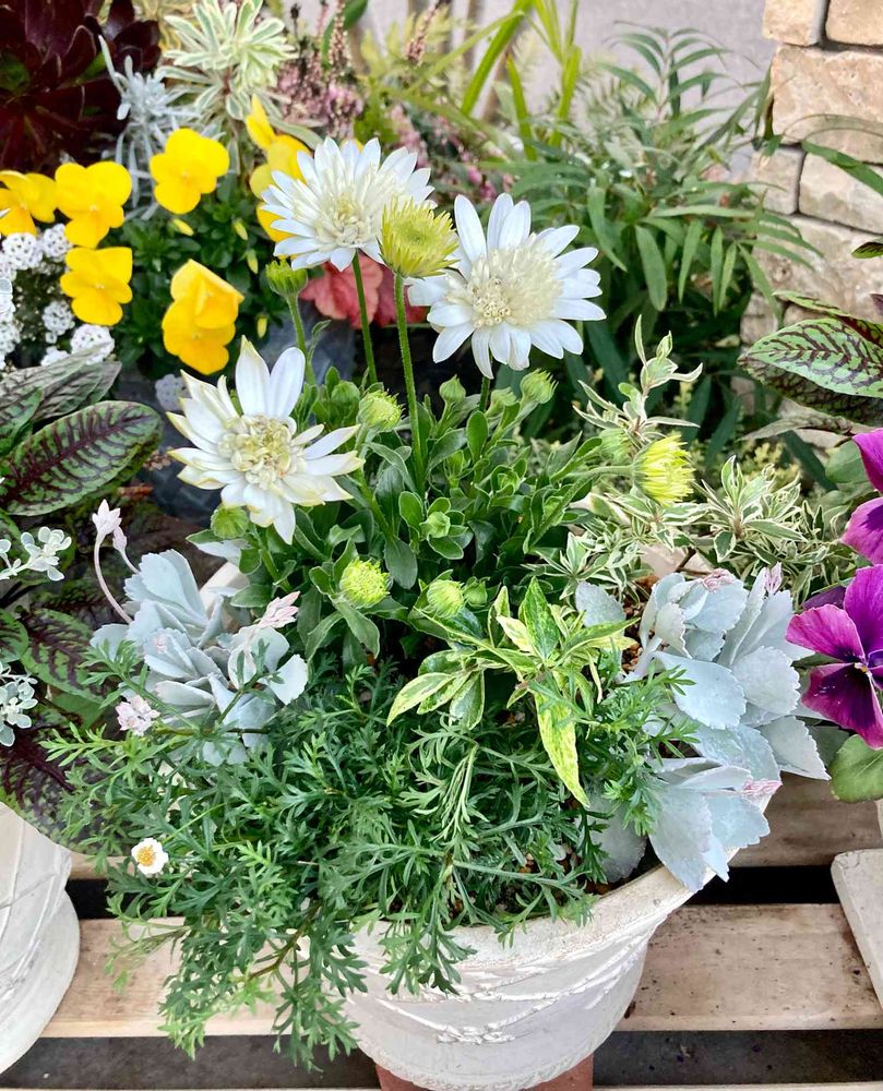 オステオスペルマムの3Dナヌークの白がとても素敵でお迎えしました♪