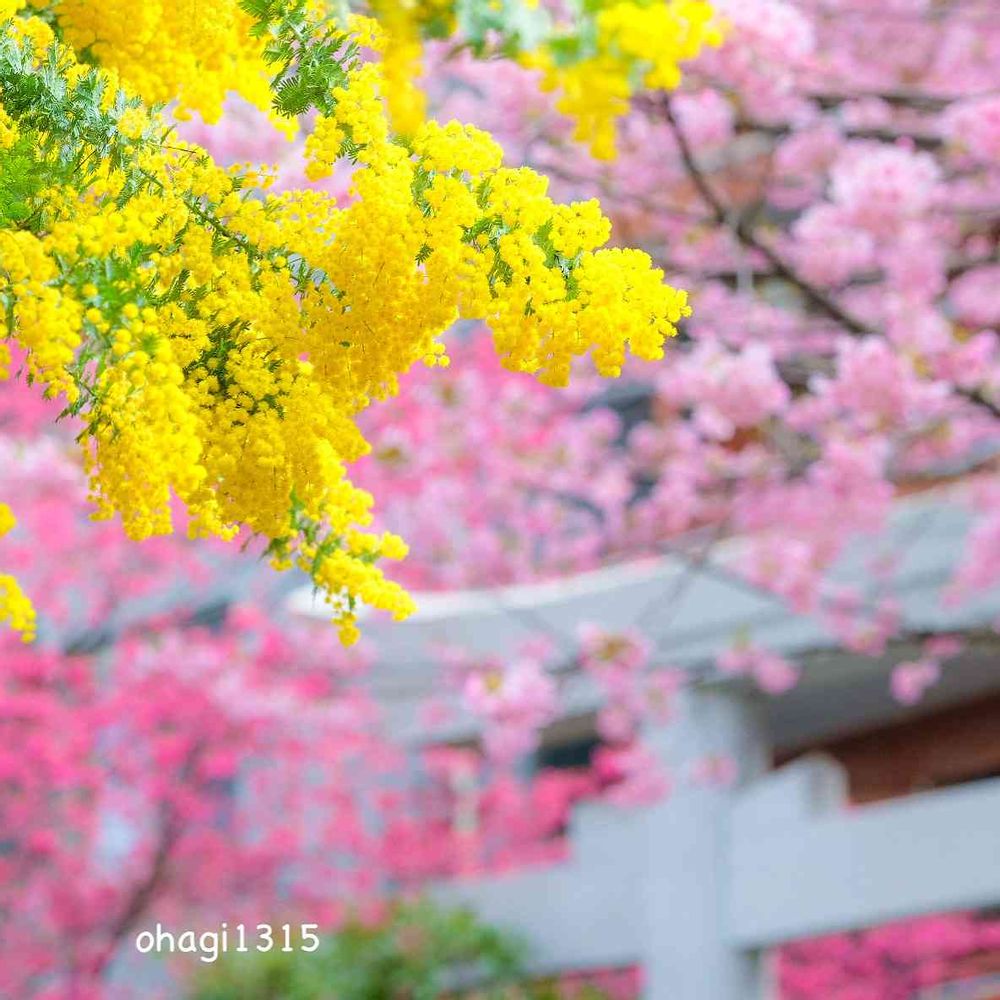 さん🎶こんにちは😊どうもありがとうございます✨ピンクの桜と黄色いミモザのコントラストが可愛いです🤭