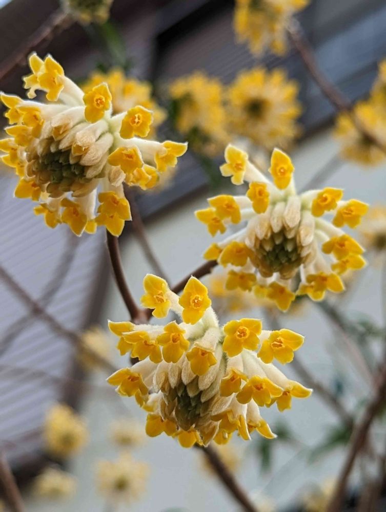 ミツマタ あの和紙の材料になる木ですよね 何年も前に和紙の里にいった時みたことがあったけど花🌼は初見です