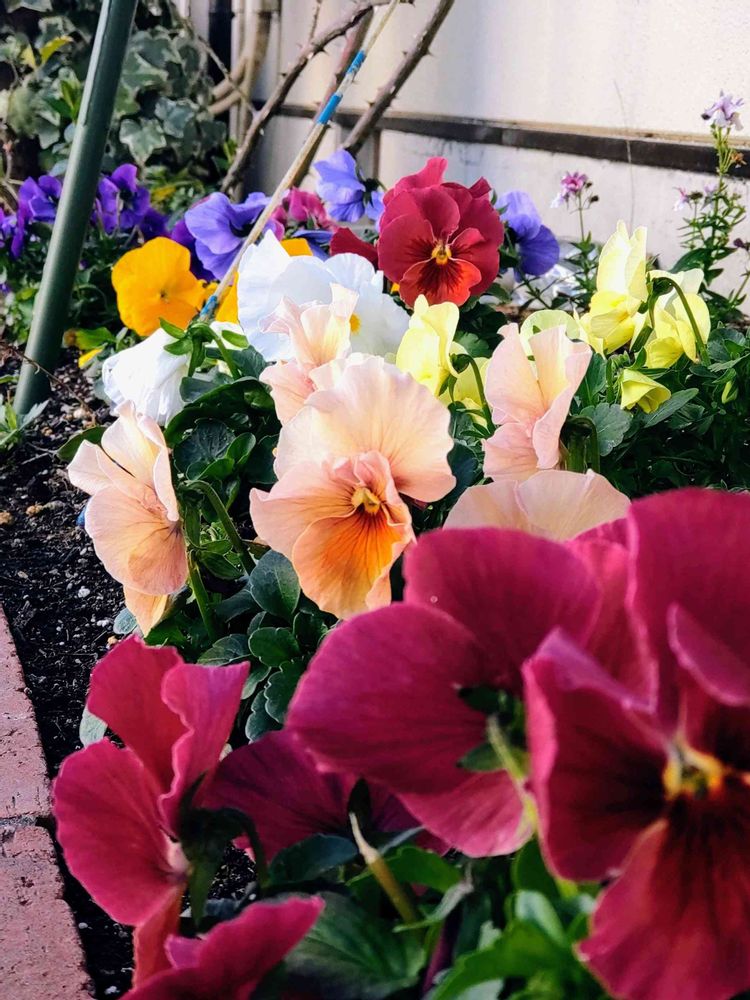 暖かくなって半額で買ったパンジーもきれいに咲きそろいました。😆😊