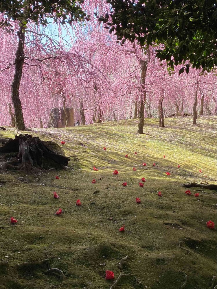 枝垂れ梅,落ち椿,京都 城南宮の投稿画像