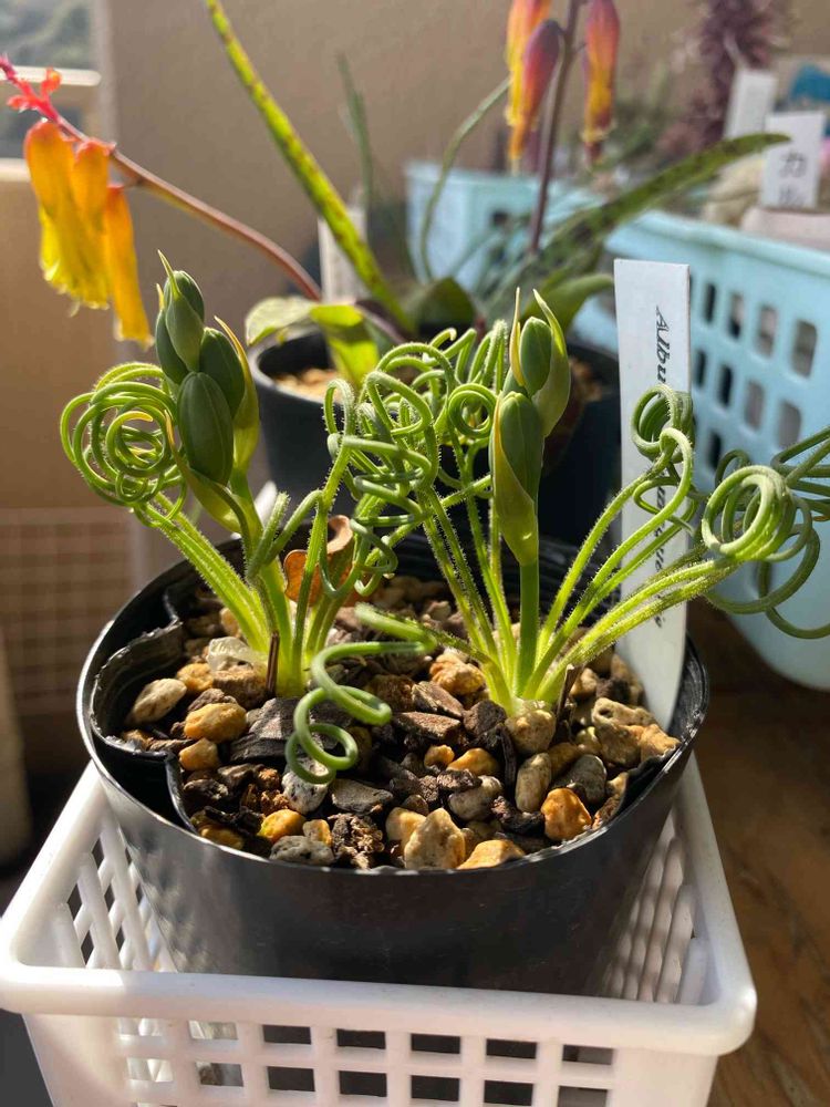 蕾が出てきました♪。今年は日向で育てることができたので葉っぱもクルクル、徒長もせずいい感じですね(^^)。