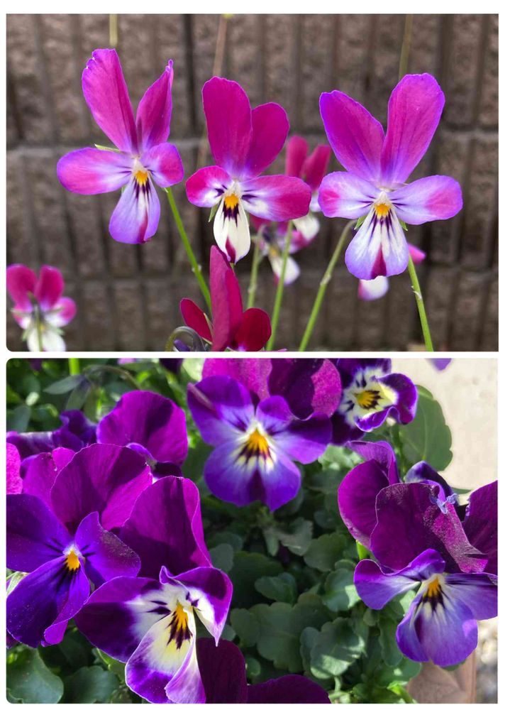 どちらも可愛いですがビミョーに姿と色が違ってますね( 💜´꒳`*)種採取からの種まきはこれだから止められないですね💜うちの自家採種ビオラはノーマルからバニー👯♀️タイプになりましたよ(*≧艸≦)