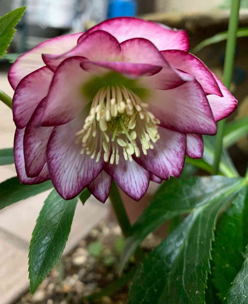 初開花のクリスマスローズは八重咲ピコティでした🍀この子も可愛い🍀