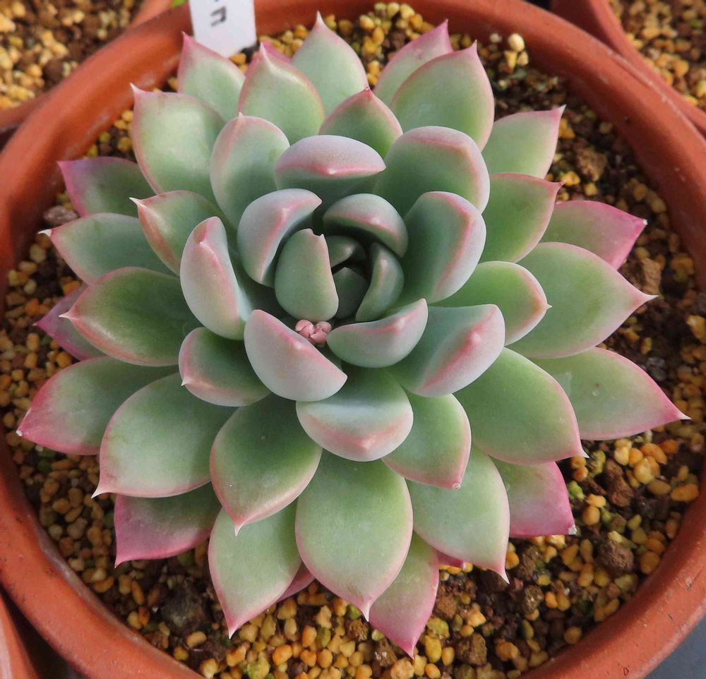 縁取りが少しピンクになるくらいで,去年の冬ほど紅葉しなかったキングマイダス。ロゼットは大きくなって,見た目が立派になってきた。