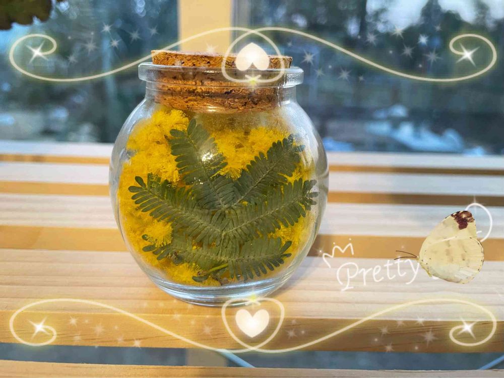 ミモザの瓶詰め😄鑑賞用です。