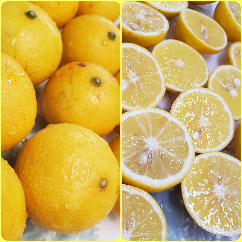 さん、レモンより真ん丸でゴルフボールより少し大きいくらいです。生食より加工品になることが多いんだけど、果汁たっぷりで爽やかですよ✨