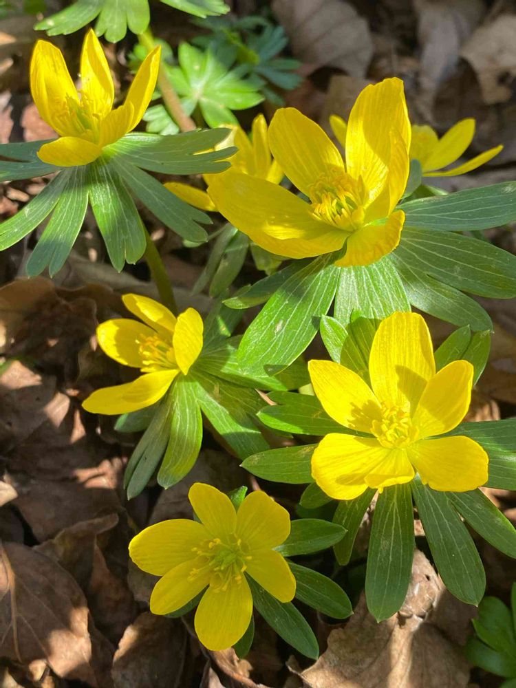 こちらも元気に咲いてました。日本のセツブンソウより少し大振りでツヤがあるでしょうか。福寿草をよりシンプルにデザインし直したような感じ(?)