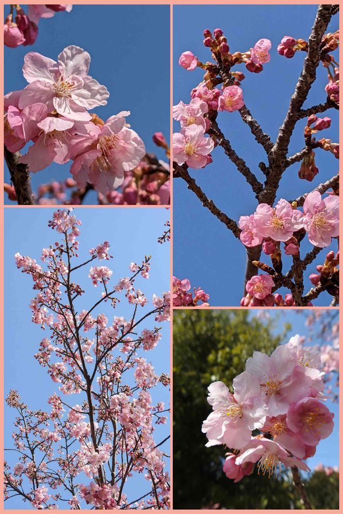昨日に続けてでゴメンナサイ🙏❗青空に映えてイキイキと咲き出した綺麗な花🌸河津桜🌸