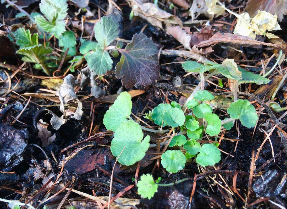 ヤマネコノメソウとダイコンソウの越冬ロゼット🌿