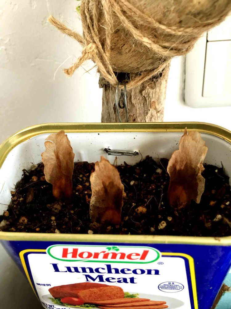 うちの植木鉢(リメ缶には程遠い…)ポーク缶が大活躍してます!チューリップもホーメルもスパムもありますよ〜((´艸`*))